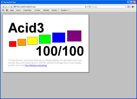 Para poner prueba a los navegadores (browsers), WaSP han desarrollado varios tests, que pretenden sacar el máximo partido de los estándares web, al poner al limite el procesamiento del navegador y de esa forma, el usuario, pueda tener una valoración del producto y versión que está utilizando, para escoger el mejor navegador acorde a sus necesidades. Estos son los resultados del Acid test 3 (que pone a prueba el navegador con las especificaciones CSS 2.1, DOM y EcmaScript) de Internet Explorer 6.0 y 8.0, Firefox 3.5, Chrome 3.0, Safari 4.3, Opera 10.0, Flock 2.5, K-meleon 1.5 y SeaMonkey 2.0 instalados en el sistema operativo Windows XP.