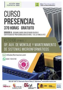 Certificado de profesionalidad para realizar operaciones auxiliares de montaje y mantenimiento de equipos microinformáticos y periféricos, bajo la supervisión de un responsable, siguiendo instrucciones y procedimientos establecidos.