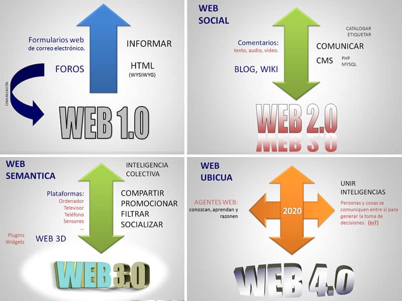 La web se ha convertido en la protagonista de Internet, fagocitando todos los servicios de información que algún día fueron usados desde programas clientes de Internet. Así mismo la web ha evolucionado convirtiéndose en la biblioteca de información por excelencia, ademas de ser el canal social que la web 2.0 sembró en su día. La web 3,0 permitió definir la semántica que hoy en día la web 4.0 utiliza de forma ubicua desde cualquier tipo de dispositivo gracias al IoT (Intenet de las cosas) y la inteligencia artificial.